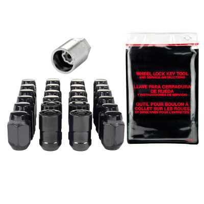 The convenient way to order wheel locks and lug nuts; Contains all the hardware that you need to install 4 wheels and tires.; McGard manufactures wheel locks and lug nuts in the USA to meet or exceed O.E.M. standards for safety and durability.; Presently, McGard is an Original Equipment wheel lock supplier to most automobile brands around the world.; These easy-to-use, one-piece wheel locks function like regular lug nuts, but require a special key tool for installation and removal.; The computer generated key designs allow for an infinite number of key patterns.; McGard lug nuts are guaranteed for life not to rust, chip or peel.; Designed and built for the real world. Think about it, harsh elements, nasty corrosive wheel cleaners, overzealous impact guns, loose fitting lug wrenches and lead-foot drivers. This kind of treatment destroys ordinary lug nuts.; McGard lug nuts can take the punishment and keep your wheels looking beautiful.; Every McGard wheel lock and lug nut is fully machined from restricted chemistry steel made specifically for McGard and through-hardened for its unsurpassed level of security and safety.; For use with steel or aluminum wheels with exposed decorative lug nuts that are tapered at the bottom. This product may contain globally sourced materials/components.
