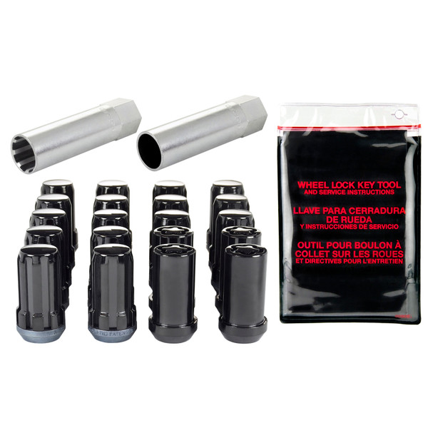 The convenient way to order Tuner wheel locks and lug nuts; contains all the hardware that you need to install 4 wheels and tires.; Why settle for ordinary lug nuts? SplineDrive Lug Nuts combine style and performance.; A no-compromise design engineered to fit small diameter recesses in Tuner style wheels.; SplineDrive lug nuts offer closed-end design, maximum gripping power, more stud engagement and a greater seating surface than socket style lug nuts.; In addition they are 30% lighter in weight.; Like all McGard lug nuts, the chrome with black PVD plating is guaranteed for life not to rust, chip or peel.; The easy-to-use, one-piece wheel locks function like regular lug nuts, but require a special key tool for installation and removal.; The computer generated key designs allow for an infinite number of key patterns.; McGard manufactures wheel locks and lug nuts in the USA to meet or exceed O.E.M.; standards for safety and durability.; Every lug nut and wheel lock is fully machined from restricted chemistry steel made specifically for McGard and through-hardened for its unsurpassed level of safety.; For use on aluminum cone seat wheels only.; This product may contain globally sourced materials/components.