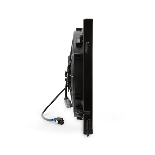 Free up some space in your BRZ / FR-S / or GT86's small engine bay with the Mishimoto Plug-N-Play Aluminum Fan Shroud Kit in Black! This kit bolts directly to your stock or Mishimoto Subaru BRZ /Scion FR-S Performance Aluminum Radiator and works perfectly with the stock coolant overflow tank. The brushed aluminum fan shroud is preassembled in the correct location with two 12in high-flow fans, and prewired with stock-style connectors. This plug-n-play kit requires zero splicing, soldering, or crimping and bolts into place just like the stock fan shroud setup. Each fan provides over 1150 CFM of airflow, which effectively keeps hot engine temperatures at bay. Thanks to a slim profile, this fan shroud has a maximum depth of just 3.5in that saves significantly more engine bay space for a larger header, turbo kit, or supercharger. This kit includes all hardware for installation and the Mishimoto Lifetime Warranty.