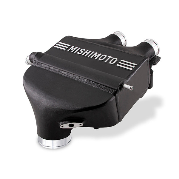 BMW has a knack for maintaining their stake as the benchmark when it comes to performance luxury vehicles, with the F8X generation being no exception. The S55 that powers the 2015-2020 BMW F8X M3, M4 and M2 Competition is dripping with technology, which includes an air-to-water intercooling system for a means of keeping cool. Where BMW's intercooler design was enough to help bring this generation of mid-sized M's to their peak, we here at Mishimoto found some weaknesses that we felt obliged to improve on. We started with the end tanks. The Mishimoto Performance Air-to-Water Intercooler features full, cast aluminum end tanks, TIG welded to our bar-and-plate core for maximum durability as you increase the boost in your Bimmer. Our end tanks also include internal air diverters on both the inlet and outlet to ensure an even flow of charged air through the core. When it comes to the core, bigger is better, and we were able to expand the size of our core in all dimensions, resulting in a 29-percent increase in core volume while abstaining from any modifications when it comes to installation. Our new core also features a unique single-pass internal fin layout for the coolant passage for optimal heat transfer from the charged air to the coolant. With our improvements combined, we saw the Mishimoto 2015-2020 BMW F8X M3 and M4 Performance Intercooler increase flow through the core by 16-percent and recorded a 12 F drop in intake air temperatures when tested with the Mishimoto Performance Heat Exchanger. We also recorded an average increase of 11whp and 8wtq during our testing with peak gains of up to 31whp and 10wtq. With the micro-wrinkle black finish and sleek header plate design, the Mishimoto Performance Air-to-Water Performance intercooler makes for not only the perfect addition to your F8X build, but also looks right at home in the M's engine bay. Like all of our products, the Mishimoto 2015-2020 BMW F8X M3, M4, and M2 Competition Performance Air-to-Wate