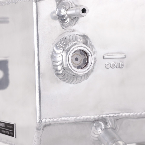 It's only been four years since the first Ford Ranger 2.3L EcoBoost rolled off the assembly line, but those four years have been rough on some of the plastic parts under your Ranger's hood. Your coolant expansion tank is probably beginning to show its age thanks to thousands of heating and cooling cycles bathed in orange or pink coolant. It's likely developed that classic dingy yellow tone, and it may be hard to see the coolant level through the side of the tank that gets more opaque by the day. Soon enough, that plastic expansion tank will become brittle, and one misplaced elbow or especially deep pothole has the potential to start a cascade of coolant. Luckily, Mishimoto's 2019+ Ford Ranger all-aluminum expansion tank is built to last a lifetime.----Our Ford Ranger EcoBoost expansion tank is constructed from aircraft-grade aluminum and precision TIG-welded to create a durable expansion tank that can withstand thousands of heat cycles and high pressures without cracks or leaks. On the outside, we've included a high-visibility sight glass and stamped cold-fill line to make checking your coolant level easy, while the available micro-wrinkle black powder coated or polished finishes suit any style. Our fill neck also accepts the stock expansion tank cap to keep maintenance easy. Inside, baffles keep coolant cycling into the engine, no matter how steep the road or trail gets.----Like all of our products, this aluminum expansion tank for your 2019+ Ford Ranger 2.3L EcoBoost is backed by our Mishimoto Lifetime Warranty for a lifetime of durability and worry-free running.