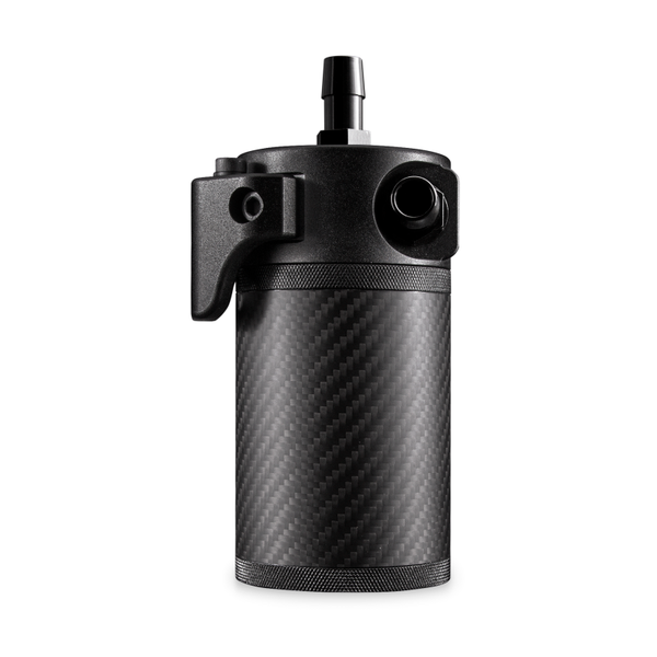 Here at Mishimoto, we don't believe in good enough. In fact It's quite the opposite. We strive in taking our products to the next level, and living by our mantra, Push the Limits. It's this attitude along with months of testing and development that has lead us to our newest patent pending carbon fiber catch can. We've taken every bit of engineering that we put into our compact catch can, and took it to the next level. For starters, we increased the size of the can to a 7.4 fluid ounce capacity. We've also constructed the can's body from 3K carbon fiber, reducing the weight but also maximizing your engine bay's aesthetic. Our carbon fiber catch can doesn't only look the part, it acts the part. We've incorporated a uniquely designed baffled insert which makes short work of separating oil and blow-by contaminates from your PCV system. The clean air is routed through our high-flow filter material, which acts as a safety net against any rogue oil droplets without compromising the improved airflow characteristics, even in freezing temperatures. We've also taken the hassle out of checking the fluid level and servicing your catch can by incorporating a quarter-turn lid. Servicing is now as easy as a flick of the wrist. We also ran several tests to ensure that our improved design would capture harmful blow-by on just about every engine configuration, and put the carbon fiber body to the ultimate test of 100,000 pressurization cycles.The carbon fiber catch can and filter are both fully serviceable, and also includes the Mishimoto Lifetime Warranty to ensure long lasting protection for your vehicle.