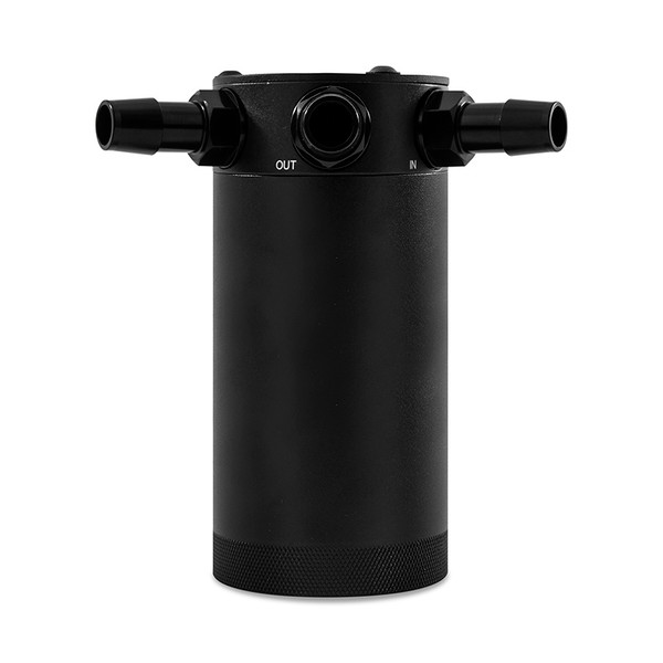 With years of oil catch can research and development, Mishimoto has created the most effective oil catch can on the market. The patent pending Mishimoto XL Baffled Oil Catch Can was designed to separate oil particles from the PCV/CCV air that would normally have just been routed back to your intake. The internal air diverter increases air turbulence and ensures all the oil sinks to the bottom of the can, leaving nothing but clean air to pass through the 50-micron bronze filter to the intake. An internal baffle keeps the collected oil from splashing around under race conditions. This oil catch can features three ports, two inlet and one outlet, for easy installation on CCV and PCV systems.The Mishimoto XL Baffled Oil Catch Can features a 7.5 fluid ounce capacity for heavy blow-by collection or extending the servicing interval on any vehicle. The 100-percent billet, 6061 aluminum can features M16 x 1.5 threads at the inlet, outlet, and drain area and includes three black anodized, CNC-machined aluminum fittings to make installation effortless. Our catch can is also sealed with Viton™ O-Rings to ensure all captured blow-by stays inside of the can. For maximum fitment options, the top mounting setup allows the can to be mounted from multiple angles. To make maintenance easy, the drain plug can be removed to allow for a return to the oil pan. The can is also 100-percent washable, unlike many other cans that require you to replace your filtration system.Our catch cans are different from most air-oil-separator (AOS) systems on a few levels. First, our catch cans are not heated. This means that all of the blow-by is able to condense in the can, including low-octane oil vapors and contaminated fuel vapors. Most AOS systems also drain the blow-by back into the oil pan, while our catch cans trap the blow-by and keep it out of the engine permanently. If you’ve seen what we’ve seen in the bottom of our catch cans, you won’t want that draining back into your oil either.