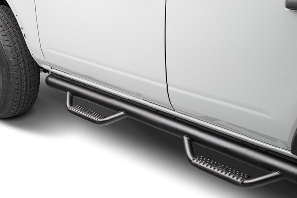 Built with today's work truck in mind, N-FAB offers its patented hoop step design and innovative mounting system in a Cab Length configuration. Designed with classic N-FAB styling, Cab Length Nerf Steps are ideal for flat bed trucks, stake bed trucks, vehicles with campers, and even trucks with side exhaust forward of the rear wheels. Manufactured from .084 wall tubular steel, Cab Length Nerf Steps provide all of the strength and durability for which N-FAB is known. All Nerf Steps have a 5 year Finish and Lifetime Workmanship Warranty.