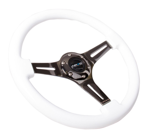 NRG Classic Wood Grain Steering Wheel (350mm) White Paint Grip w/Black 3-Spoke Center - ST-015BK-WT