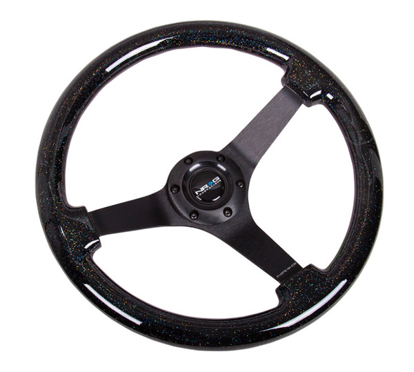 NRG Reinforced Steering Wheel (350mm / 3in. Deep) Classic Blk Sparkle w/4mm Neochrome 3-Spoke Center