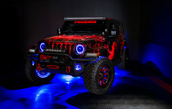 The Popular Oculus(tm) Bi-LED Headlights by ORACLE Lighting are now available in a ColorSHIFT(tm) RGB+W Color-Changing version. Oculus Headlights feature advanced focused LED projection that outshines all the competition (including the factory LED headlights). With 4,800 Lumens of high-quality Bi-LED projection, these headlights provide enhanced driver visibility in all weather conditions. Light focus is very important for driver safety and for others who can have their vision obstructed by glare. We are proud to offer the most focused & lowest-glare LED Headlights for the JL and JT on the market. Each LED feature has a separate cable output and can be connected together so all 3 create the same color or set up as 3 separate Channels or "zones" depending on the user preference and the ColorSHIFT controller selected. Please note that these features are intended for off-road "show" use only and are not compliant for street use. The Pure-White DRL has its own wiring harness (same as the original Oculus) that connects to the fuse box with an add-a-circuit for easy and safe integration. The DRL will come on when the engine is running or can be connected to a switch (including the factory Aux switches) for additional user control.