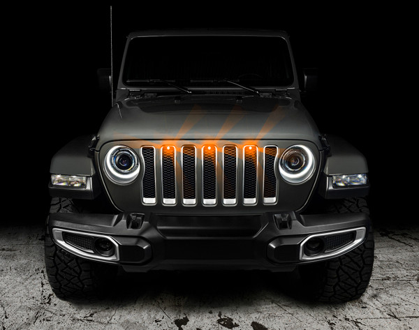 Give your Jeep Gladiator JT a new, stylish LED accent with our Pre-Runner Style LED Grill Light Kit. Add 3x LED marker lights to the front grill of your without any cutting or drilling, these simply install into the holes of the grill. The wiring harness reduces installation time by using a plug-and-play system with offset cable lengths to make cable management easier. Give the front end a brighter illumination for safety and style in one. These super-bright 3-watt LEDs make your Gladiator stand out and can be connected to your parking lights, Daytime Running Lights, or to an auxiliary switch. Multiple colors are available. (Only Amber and White can be used On-Road.)WIRING: White or Amber Pre-Runner Kit Note: DRL wire cannot be used as a power source - Tapping into Park Lights will give manual control over LED accessory during daytime driving - LED accessory will turn on automatically in night mode when switch is set to AUTO - For full automatic control over the LED accessory use fuse F52 in the engine compartment fuse panel. WIRING: Red, Blue, or Green Pre-Runner Kit Extend Red (+) wire to controller, to toggle switch, existing headlight halo Extend Black (-) wire to common ground