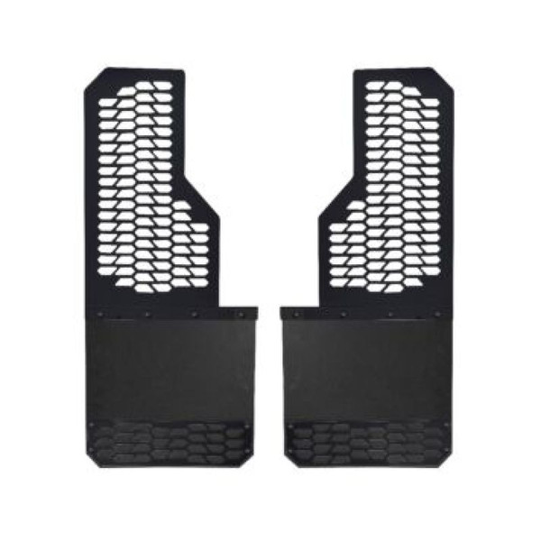 Putco’s New Hex Shield™ mud flaps are custom-fit and deliver the best protection against rocks, mud, snow buildup, and all the other debris your truck likes to find on the road. These new Mud Skins™ feature our popular Hex Shield™ pattern and install in just a few minutes. These are manufactured with carbon black high-density polyethylene (HDPE) right here in the USA! It's time to protect your truck from debris with the coolest no-drill head-turning offset mud flaps on the market. The offset design is the perfect style for today's pickup trucks with oversized tires... or not! The flap is made with the Gortillatuff Spashguards™ – this stuff is thick and extremely durable for anything that mother nature decides to throw at it.  Get a front set, the rear set, or the full set today!