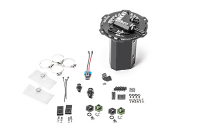 Newly redesigned in-tank fuel hanger for the Mitsubishi Evolution X. Can be used with single or dual pump. Compatible with Walbro F90000-series fuel pumps (aka Walbro 450 and similar). Pre-installed fittings compatible with factory fuel lines, but also includes fittings for 8AN feed and 6AN return lines if using aftermarket hoses.