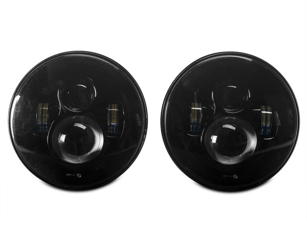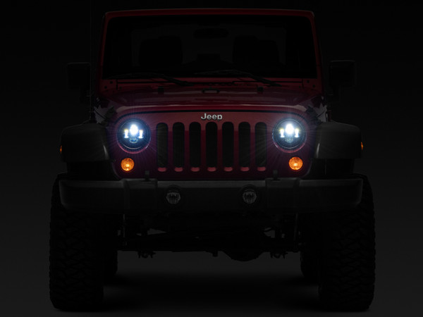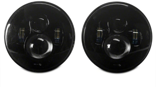 Driving through low visible trails and roads with your 1997-2018 Jeep Wrangler just got much easier with this pair of Axial LED Black Daymaker Headlights. These high-powered, round 7" LED lights come with built-in EMC function for anti-flicker so you won't need an extra decoder to prevent interference from electrical currents. With over a 50,000-hour lifespan, this pair of rugged headlights is made to last while lighting your path. These bright Axial LED Black Daymaker Headlights feature 100% original high-performance CREE LED lamps that put out 3200-4500 raw lumens. Each bulb powered by DC 9-30V is 45 Watts with a 6000K color temperature made to illuminate the dark trails ahead of you. Raxiom designed these Black Daymaker Headlights to handle nearly any type of environment. This pair of IP67 waterproof, shockproof and dustproof headlights are constructed with black durable aluminum housings to prevent moisture, vibration and dust from damaging your electronics. Similar to other plug-and-play lights on the market, these LED Black Daymaker Headlights are made to be an easy replacement for your headlights. No cutting or modifications are needed and installation should take approximately 1 hour to complete. These aftermarket LED Headlights are intended for use with factory halogen headlight equipped models. In order to use these aftermarket LED Headlights on a Jeep that is already factory equipped with LED headlights, you will require a set of factory halogen headlight buckets – not included.