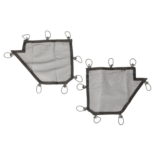 Rugged Ridge Eclipse Tube Door Covers gives JK owners the ability to enjoy the open air element of their Rugged Ridge tube doors while providing a higher level of containment for the passenger area and its contents. Nylon reinforced mesh construction offers a sturdy barrier that installs quickly and easily with the integrated bungee trap and button retaining system. Highly functional and great-looking?you?ll wonder how you ever did without them! Sold in pairs. (For front tube door covers, use 13579.50)