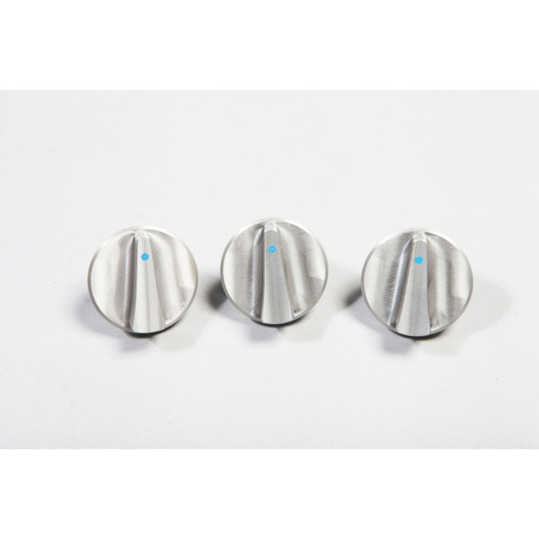 Billet aluminum Wrangler Climate Control Knobs. These stylish knobs are easily installed by pulling off the factory knobs and pushing These back in their place. Choose red or blue colored inserts in the face of the knobs to illuminate at night and show their position.