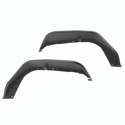 Leave the pavement far behind, along with your sense of refinement, with a full set of Rugged Ridge Steel Tube Fenders. We engineered these fenders to really shine when there are rocks to climb, so we started with a burly 1.25- in. mandrel-bent steel tube frame. The fenders top skin was die-stamped and laser-cut from 12-gauge steel plate, rugged enough to survive a real-world bashing that would send a plastic fender to the trash pile. Stylized front plates, contoured base plates, as well as marker light brackets, are all CNC bent from 3mm thick steel, carrying out the tradition of being tougher than they need to be; while integrated amber LED corner lights keep things highway-friendly. Since the elements off-road can be as harsh as the terrain, we finished our JL Steel Tube Fenders with a durable satin black powder coat finish that resists rust and corrosion and looks civilized doing it. Add in Teflon-coated button head hardware with Nylock retainers and it's hard to find a more potent off-road combination. Plus, you can shake off another load of factory plastic when you add a set of Aluminum Front Inner Fenders (11615.61) to complete the look of your new fenders. Available in pairs for Front or Rear, and Full Sets. (Note: Some JL models equipped with LED Lighting package may require Tazer programming to remove a 'bulb-out' dash warning)