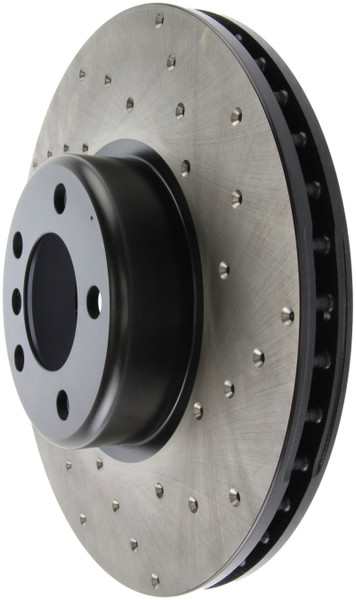 StopTech Drilled Sport Rotors are 1-piece direct replacement brake discs for factory brake systems and stock calipers that look great behind your wheels - and offer significantly improved braking performance. The unique cross-drilling aids with heat and brake dust dispersal; prevents glazing of the pads; adds bite and improves wet and dry braking performance. Built to last; the black e-coating provides protection from corrosion and the high carbon metallurgy (in most applications) offers quieter operation; better crack resistance and increased performance.