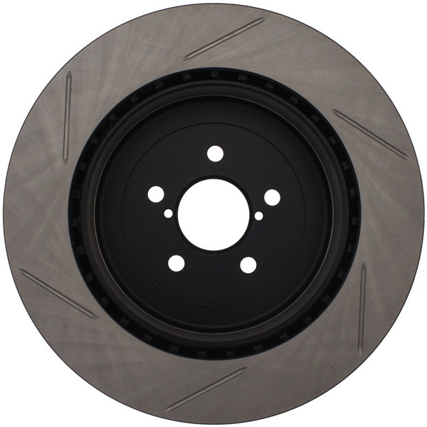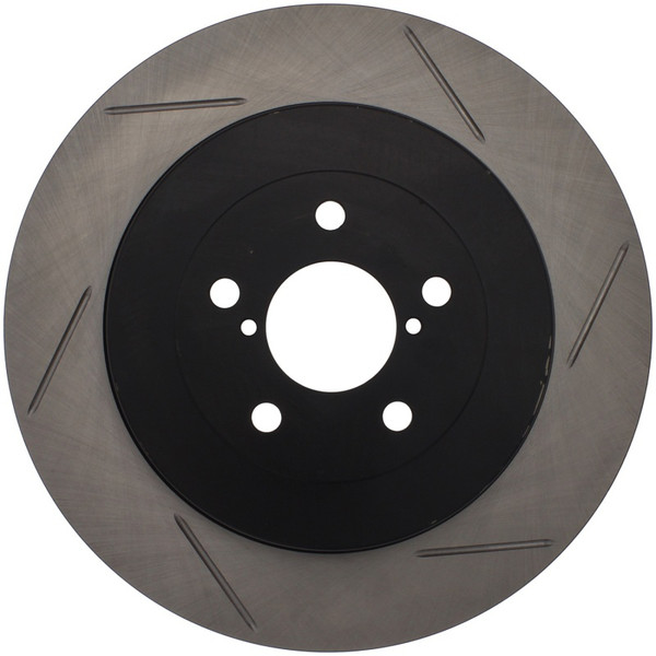 StopTech Slotted Sport Rotors are 1-piece direct replacement brake discs for factory brake systems and stock calipers that look great behind your wheels - and offer significantly improved braking performance. The unique slotting aids with heat and brake dust dispersal; prevents glazing of the pads; adds bite and improves wet and dry braking performance. Built to last; the black e-coating provides protection from corrosion and the high carbon metallurgy (in most applications) offers quieter operation; better crack resistance and increased performance.