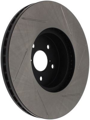 StopTech Slotted Sport Rotors are 1-piece direct replacement brake discs for factory brake systems and stock calipers that look great behind your wheels – and offer significantly improved braking performance. The unique slotting aids with heat and brake dust dispersal; prevents glazing of the pads; adds bite and improves wet and dry braking performance. Built to last; the black e-coating provides protection from corrosion and the high carbon metallurgy (in most applications) offers quieter operation; better crack resistance and increased performance.