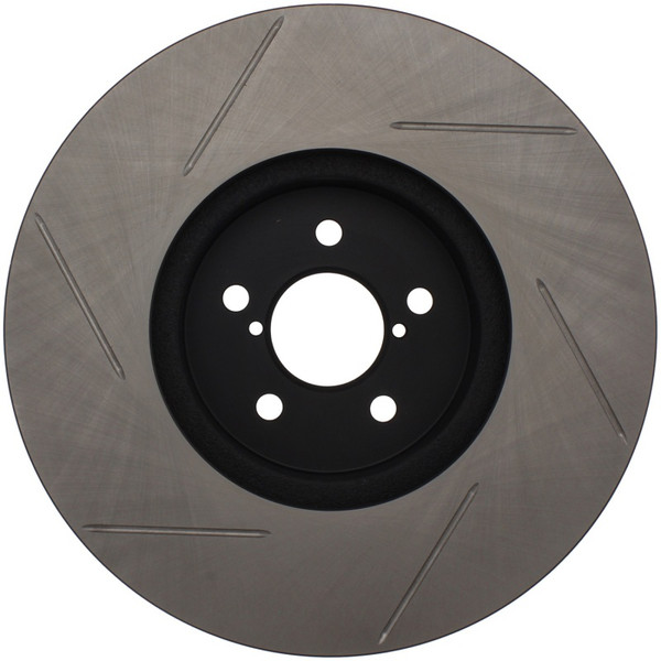 StopTech Slotted Sport Rotors are 1-piece direct replacement brake discs for factory brake systems and stock calipers that look great behind your wheels - and offer significantly improved braking performance. The unique slotting aids with heat and brake dust dispersal; prevents glazing of the pads; adds bite and improves wet and dry braking performance. Built to last; the black e-coating provides protection from corrosion and the high carbon metallurgy (in most applications) offers quieter operation; better crack resistance and increased performance.