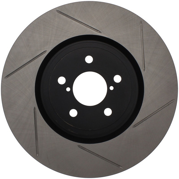 StopTech Slotted Sport Rotors are 1-piece direct replacement brake discs for factory brake systems and stock calipers that look great behind your wheels - and offer significantly improved braking performance. The unique slotting aids with heat and brake dust dispersal; prevents glazing of the pads; adds bite and improves wet and dry braking performance. Built to last; the black e-coating provides protection from corrosion and the high carbon metallurgy (in most applications) offers quieter operation; better crack resistance and increased performance.