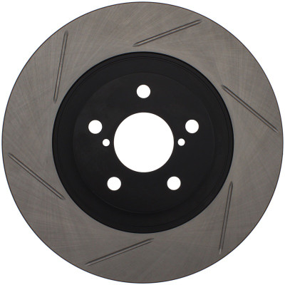 StopTech Slotted Sport Rotors are 1-piece direct replacement brake discs for factory brake systems and stock calipers that look great behind your wheels – and offer significantly improved braking performance. The unique slotting aids with heat and brake dust dispersal; prevents glazing of the pads; adds bite and improves wet and dry braking performance. Built to last; the black e-coating provides protection from corrosion and the high carbon metallurgy (in most applications) offers quieter operation; better crack resistance and increased performance.