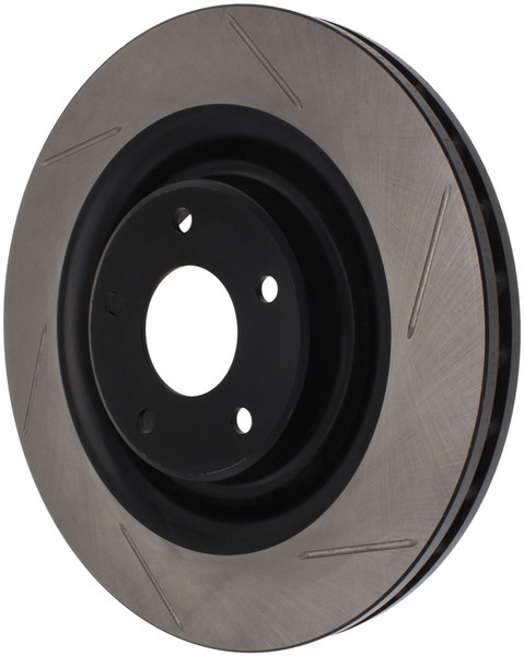 StopTech Slotted Sport Rotors are 1-piece direct replacement brake discs for factory brake systems and stock calipers that look great behind your wheels – and offer significantly improved braking performance. The unique slotting aids with heat and brake dust dispersal; prevents glazing of the pads; adds bite and improves wet and dry braking performance. Built to last; the black e-coating provides protection from corrosion and the high carbon metallurgy (in most applications) offers quieter operation; better crack resistance and increased performance.