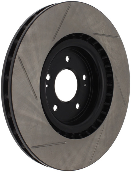 StopTech Slotted Sport Rotors are 1-piece direct replacement brake discs for factory brake systems and stock calipers that look great behind your wheels – and offer significantly improved braking performance. The unique slotting aids with heat and brake dust dispersal; prevents glazing of the pads; adds bite and improves wet and dry braking performance. Built to last; the black e-coating provides protection from corrosion and the high carbon metallurgy (in most applications) offers quieter operation; better crack resistance and increased performance.