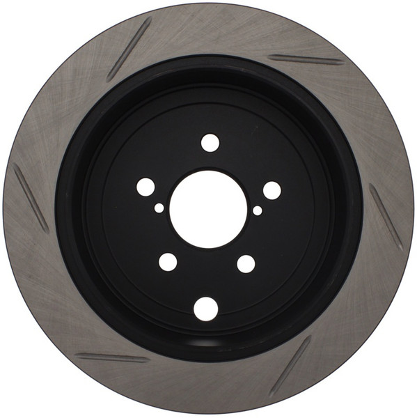StopTech Slotted Sport Rotors are 1-piece direct replacement brake discs for factory brake systems and stock calipers that look great behind your wheels - and offer significantly improved braking performance. The unique slotting aids with heat and brake dust dispersal; prevents glazing of the pads; adds bite and improves wet and dry braking performance. Built to last; the black e-coating provides protection from corrosion and the high carbon metallurgy (in most applications) offers quieter operation; better crack resistance and increased performance.