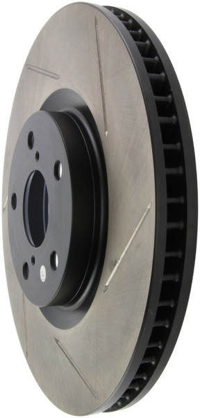 StopTech Slotted Sport Rotors are 1-piece direct replacement brake discs for factory brake systems and stock calipers that look great behind your wheels – and offer significantly improved braking performance. The unique slotting aids with heat and brake dust dispersal; prevents glazing of the pads; adds bite and improves wet and dry braking performance. Built to last; the black e-coating provides protection from corrosion and the high carbon metallurgy (in most applications) offers quieter operation; better crack resistance and increased performance.