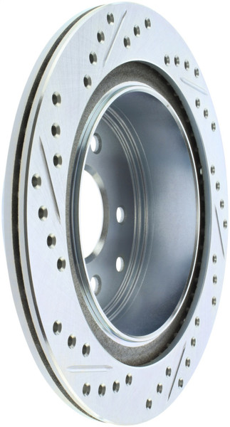 StopTech Drilled and Slotted Sport Rotors are 1-piece direct replacement brake discs for factory brake systems and stock calipers that look great behind your wheels – and offer significantly improved braking performance. The unique cross-drilling and slotting aids with heat and brake dust dispersal; prevents glazing of the pads; adds bite and improves wet and dry braking performance. Built to last; the black e-coating provides protection from corrosion and the high carbon metallurgy (in most applications) offers quieter operation; better crack resistance and increased performance.