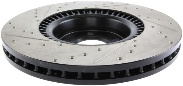 StopTech Drilled and Slotted Sport Rotors are 1-piece direct replacement brake discs for factory brake systems and stock calipers that look great behind your wheels and offer significantly improved braking performance. The unique cross-drilling and slotting aids with heat and brake dust dispersal; prevents glazing of the pads; adds bite and improves wet and dry braking performance. Built to last; the black e-coating provides protection from corrosion and the high carbon metallurgy (in most applications) offers quieter operation; better crack resistance and increased performance.