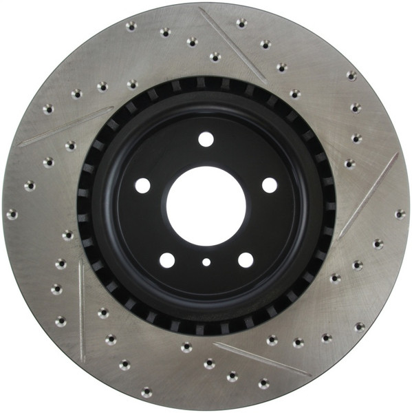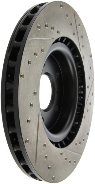 StopTech Drilled and Slotted Sport Rotors are 1-piece direct replacement brake discs for factory brake systems and stock calipers that look great behind your wheels – and offer significantly improved braking performance. The unique cross-drilling and slotting aids with heat and brake dust dispersal; prevents glazing of the pads; adds bite and improves wet and dry braking performance. Built to last; the black e-coating provides protection from corrosion and the high carbon metallurgy (in most applications) offers quieter operation; better crack resistance and increased performance.