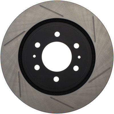 StopTech Drilled and Slotted Sport Rotors are 1-piece direct replacement brake discs for factory brake systems and stock calipers that look great behind your wheels – and offer significantly improved braking performance. The unique cross-drilling and slotting aids with heat and brake dust dispersal; prevents glazing of the pads; adds bite and improves wet and dry braking performance. Built to last; the black e-coating provides protection from corrosion and the high carbon metallurgy (in most applications) offers quieter operation; better crack resistance and increased performance.