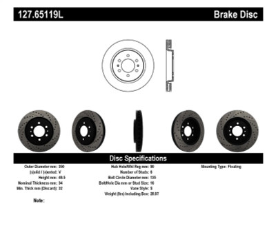 StopTech 127.65119L Sport Drilled & Slotted Brake Rotor For 10-20 Ford F150