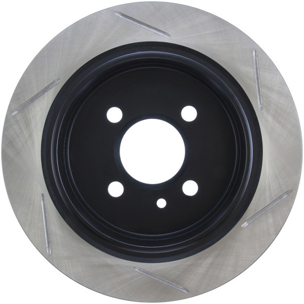 StopTech Slotted Sport Rotors are 1-piece direct replacement brake discs for factory brake systems and stock calipers that look great behind your wheels - and offer significantly improved braking performance. The unique slotting aids with heat and brake dust dispersal; prevents glazing of the pads; adds bite and improves wet and dry braking performance. Built to last; the black e-coating provides protection from corrosion and the high carbon metallurgy (in most applications) offers quieter operation; better crack resistance and increased performance.