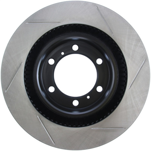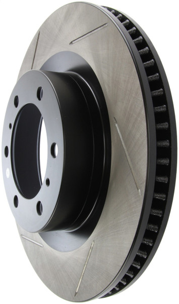 StopTech Slotted Sport Rotors are 1-piece direct replacement brake discs for factory brake systems and stock calipers that look great behind your wheels - and offer significantly improved braking performance. The unique slotting aids with heat and brake dust dispersal; prevents glazing of the pads; adds bite and improves wet and dry braking performance. Built to last; the black e-coating provides protection from corrosion and the high carbon metallurgy (in most applications) offers quieter operation; better crack resistance and increased performance.