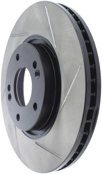 StopTech Slotted Sport Rotors are 1-piece direct replacement brake discs for factory brake systems and stock calipers that look great behind your wheels - and offer significantly improved braking performance. The unique slotting aids with heat and brake dust dispersal; prevents glazing of the pads; adds bite and improves wet and dry braking performance. Built to last; the black e-coating provides protection from corrosion and the high carbon metallurgy (in most applications) offers quieter operation; better crack resistance and increased performance.