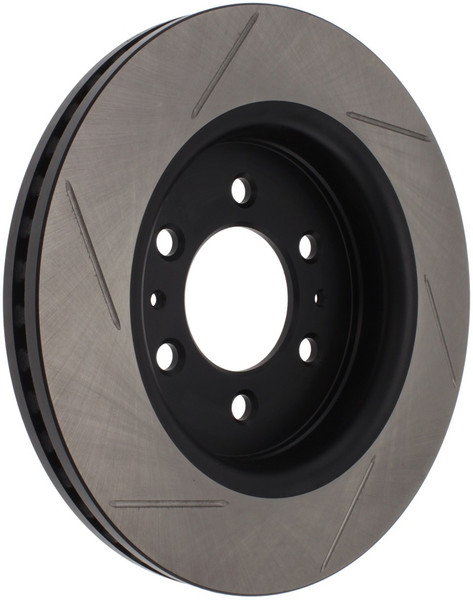 StopTech Slotted Sport Rotors are 1-piece direct replacement brake discs for factory brake systems and stock calipers that look great behind your wheels – and offer significantly improved braking performance. The unique slotting aids with heat and brake dust dispersal; prevents glazing of the pads; adds bite and improves wet and dry braking performance. Built to last; the black e-coating provides protection from corrosion and the high carbon metallurgy (in most applications) offers quieter operation; better crack resistance and increased performance.