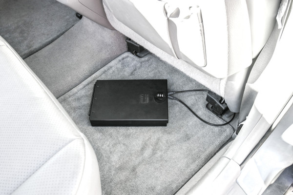 Weighing less than 3 lbs., this lockable welded steel storage box can be used to secure a firearm and protect valuables while carrying it by hand between locations, during travel, inside a vehicle, home or office. Keyless entry is provided by Tuffy’s 3 digit combination lock with a two-point steel cam for added security. The included 2 ft. long, 2000 pound test, steel security cable secures the safe to any sturdy mounting surface by attaching to the 1/8 inch steel security cable anchor point. The inside is lined with low-density foam to protect the contents, while compression bumpers keep the lid vibration-free when closed.