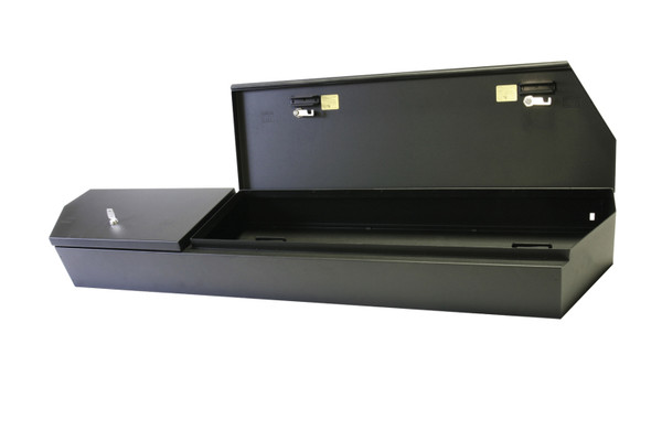 This high security welded steel security lockbox mounts under the rear seat in your 2007-2021 Toyota Tundra (Standard Crew Cab). Unfortunately, this DOES NOT fit the CrewMax (Extended Crew Cab). The full width formfitting design of the Tuffy lockbox has over 3200 cubic inches of lockable storage. Its secured contents are easily accessed by flipping either or both rear seat(s) up and opening the corresponding lid(s). The unique design allows the full width to be used to stow valuables or other long items. Featuring Tuffy's Pry-Guard Locking System with a 10 tumbler double bitted security lock with built in weather seals. Chamfered corners are incorporated into the design making it easier to operate the seat releases as well as aiding passenger ingress and egress. The innovative mounting system is only accessed from inside the box. When additional floor space is needed the entire lockbox can be removed in seconds without the need for any tools.