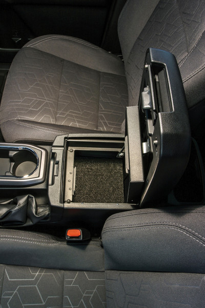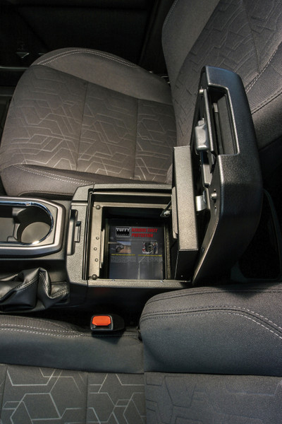 Continuing the Tuffy legacy of designing and manufacturing the finest security console safes in the industry since 1997, Tuffy is proud to introduce our security console safe for the Toyota Tacoma with a fixed center console. This 16 gauge steel console safe provides style, security and convenience. While maintaining the refined curves of the Original Manufacturer console, the Tuffy console safe transforms your Original Manufacturer console into a heavy-duty lockable storage area utilizing Tuffy's Pry-Guard locking system with 10 tumbler double bitted security key to help protect valuables from thieves. The innovative design utilizes an exclusive lid support feature that keeps the lid open while accessing contents. The safe maintains a completely stock look including full use of armrest and lid. Featuring a durable texture powder coat finish, the safe comes ready to install in just a few minutes without drilling.