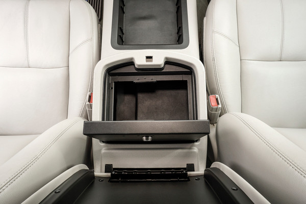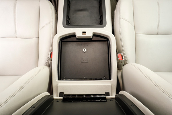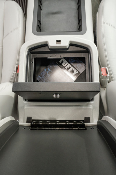 Secure your peace of mind by installing the fully integrated and concealed Tuffy Security Console Safe. As part of our ever-expanding line of Security Console Safes for trucks, the Tuffy Console Safe accommodates the Original Manufacturer 12 volt port with style, security and convenience. The Tuffy Console Safe transforms your Original Manufacturer console into a heavy-duty lockable storage safe using Tuffy's Pry-Guard locking system with 10 tumbler double bitted security key to help protect valuables from opportunistic thieves. The innovative design uses an exclusive hand saving lid support that keeps the lid open when you're grabbing stuff inside. Grab something quick without fear of the lid slamming shut on your hand. The safe maintains a completely stock look, finished with a durable texture powder coat, the Console Safe comes ready to install and lasts a lifetime.