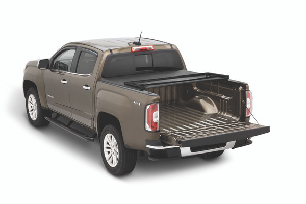 Tonno Pro's TonnoFold soft tri-folding truck bed cover is one of the easiest to use tonneau covers with exceptional durability and great looks. Its tear-resistant, double-sided vinyl top is long lasting and can handle heavy winds, light rain and snow. Under the notably strong vinyl is a powder-coated aluminum frame for an added level of protection from everyday wear and tear. This tri-folding cover keeps a tight fit to the truck bed, does not sag and has limited flutter when vehicle hits high speed. TonnoFold is delivered completely assembled making install a breeze – no drilling necessary. Simply square up the cover to your truck bed and use its easy-to-use clamping system to lock it securely in place. Hauling large cargo? Completely remove the cover in minutes to meet your unique carrying needs.