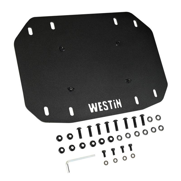 Westin's Spare Tire Mount Delete is a sleek, functional accessory designed to replace the spare tire mount on your vehicle, providing a clean, streamlined appearance. Made from high-strength materials with a durable finish, this mount delete plate offers a stylish solution for eliminating the bulkiness of a spare tire assembly. It effectively covers the mount area, protecting it from dirt and corrosion while enhancing your vehicle's overall aesthetic. The installation process is straightforward, ensuring a seamless fit that complements the vehicle's rear end. Ideal for those who prefer a minimalist look or need to reduce weight, Westin's Spare Tire Mount Delete combines form and function efficiently.