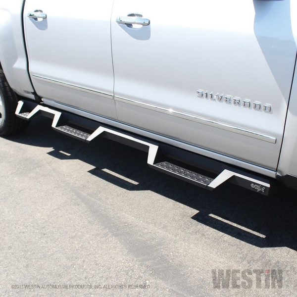 Westins HDX Drop Wheel-to-Wheel Nerf Step Bars feature a notched bar design with a 3rd step location for easy bed access. They provide strong traction with over 2 inches more of toe/heel step area than our Westin's HDX Drop W2W Nerf Step Bars include an added 3rd step location for easier bed area and cargo access. HDX also boasts more than 2 inches of added toe/heel step area which far exceeds all other competitive brands. HDX's notched bar design construction results in a reliable long lasting Bar, with a solid fit and a rugged look. The added length of HDX Drop Wheel-to-wheel Nerf Step Bars provides users with better cab access and better footing and traction for both drivers and passengers.
