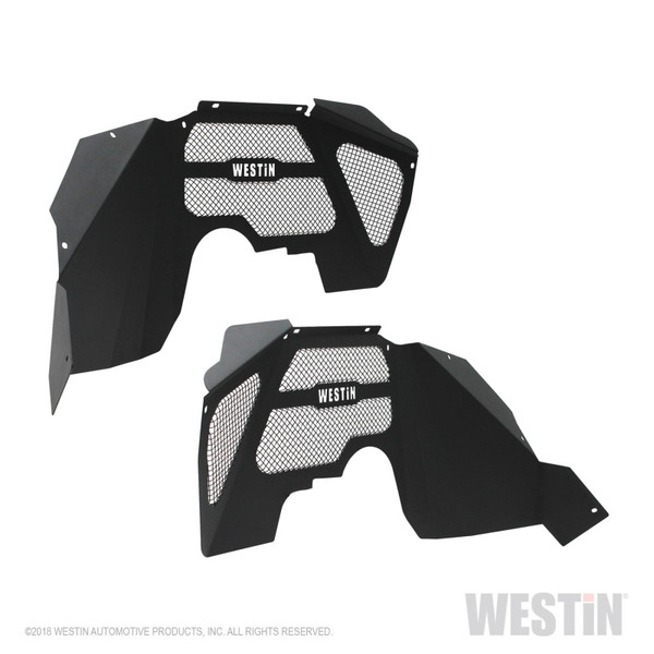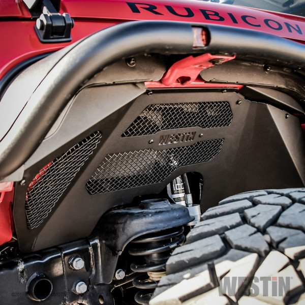Stylish and durable, Westin's Wrangler JK Front Inner Fenders provide engine protection from rocks and debris while improving airflow to the engine compartment. Designed to fit with Westin's Front Tube Fenders and made of 16 gauge steel. Sold in pairs and available in textured black finish backed by a 3 year warranty. Hardware included for easy installation