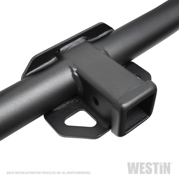Westin's Outlaw Hitches feature a high-quality textured black powder coat finish to match your vehicle's cladding and bumper trims. Outlaw Hitches provide a unique delta cut safety chain loop and a stylized forged steel collar. Class III hitches offer 7,000 lb. towing capacity. Class IV hitches offer 10,000 lb. towing capacity. Includes a 2.5in. structural bar, made of e-coated steel for maximum corrosion protection. No drilling required for most applications.