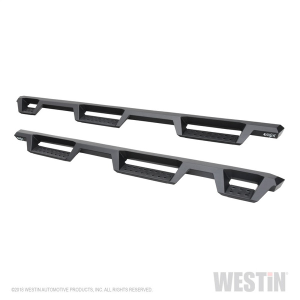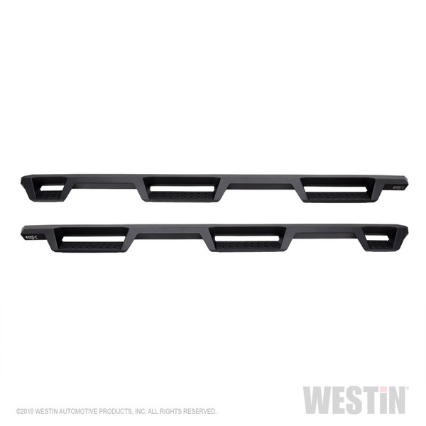 Westins HDX Drop Wheel-to-Wheel Nerf Step Bars feature a notched bar design with a 3rd step location for easy bed access. They provide strong traction with over 2 inches more of toe/heel step area than our Westin's HDX Drop W2W Nerf Step Bars include an added 3rd step location for easier bed area and cargo access. HDX also boasts more than 2 inches of added toe/heel step area which far exceeds all other competitive brands. HDX's notched bar design construction results in a reliable long lasting Bar, with a solid fit and a rugged look. The added length of HDX Drop Wheel-to-wheel Nerf Step Bars provides users with better cab access and better footing and traction for both drivers and passengers. Product includes mount kit and is offered in a variety of vehicle specific applications. Bolt-on installation so no drilling required. Mount kit included. Westin's exclusive Isolator Bracket supports the step bar past the truck cab, a feature that competitors do not offer. Without an Isolator Bracket, the step area that extends past the vehicle is left unsupported. Our unique design provides extra bed support without resulting in annoying creaking sounds.