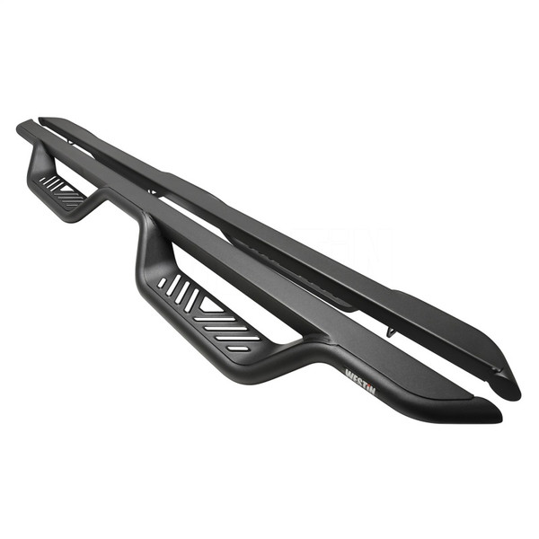 If you want a unique upgrade that makes accessing your truck, Jeep or SUV easier, Westin's Outlaw Drop Nerf Step Bars are the finishing touch you need. Crafted from mandrel bent 1.5' diameter steel tube and paired with a welded cab length top plate, these step bars are more than just an eye-catching accessory. The distinctive 4' drop step features a die-stamped step plate that makes it easy to knock the mud, dirt, and debris from your feet before you step into the cabin. Worried about compatibility' We've got you covered. From GM, Ram, and Toyota to Ford Trucks and even the newer 2 and 4 door Broncos, the Outlaw Drop Nerf Step Bars are designed to be a seamless fit. You can learn all about the benefits of adding nerf bars to your rig here. Durability' Check. Aided by an electrostatic base coat, these bars are resistant to corrosion. They're finished with corrosion-resistant textured powder-coat (even in the stainless finish option) and feature a die-stamped stainless steel step area which makes them ruggedly appealing and able to withstand the elements. No tedious installations here ' the Outlaw Drop Nerf Step Bars install with a bolt-on installation process that doesn't require any drilling. Plus, all the necessary hardware and mounting brackets are included in the package. These step bars are backed by the confidence of Westin's full 3-year warranty. If you're in the market for a practical and stylish nerf step with a blend of premium features, these side steps might just be your next buy. Contact us if you have any questions - we're happy to help.