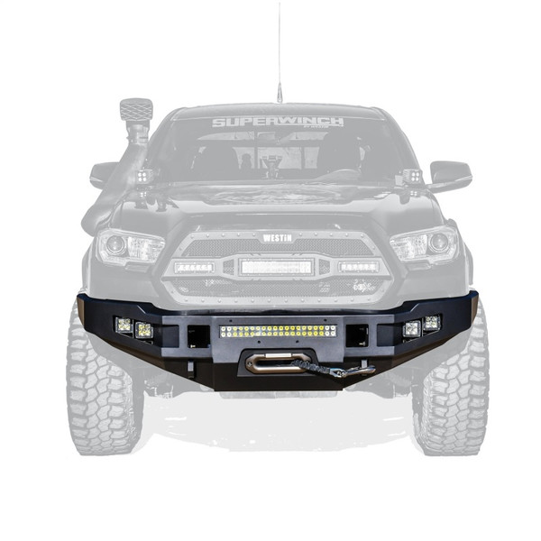The Pro-Series Front Bumper from Westin is an attractive, heavy duty, "winch capable" upgrade which retains the OE factory features while upgrading both looks and functionality. Built for adventure, this bumper is ready for anything standing in its way. The Pro-Series was engineered to improve both approach angles and ground clearance for enhanced off-road capabilities. Constructed with a 10 gauge steel bumper shell the Pro-Series is designed for maximum strength and durability. Utilizing a heavy duty 1/4in. steel center section capable of accomodating most any 12k lb. winch, and added welded mounting points for recovery, this bumper takes you off the highway with confidence. Engineered to fit most double-row 20in. LED light bars (sold separately) for added safety on those late night excursions. Finished with a durable E-coat and black textured 2-stage treatment and backed by a full 3-year warranty Westin has you covered. Includes all the necessary mounting hardware for a "hassle free installation". Pro-Series is available for Ford, Chevy, Ram and Toyota applications. Add the matching Pro-Series Rear bumper to complete the look and take your truck to the next level.