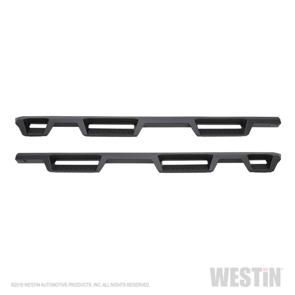 Westins HDX Drop Wheel-to-Wheel Nerf Step Bars feature a notched bar design with a 3rd step location for easy bed access. They provide strong traction with over 2 inches more of toe/heel step area than our Westin's HDX Drop W2W Nerf Step Bars include an added 3rd step location for easier bed area and cargo access. HDX also boasts more than 2 inches of added toe/heel step area which far exceeds all other competitive brands. HDX's notched bar design construction results in a reliable long lasting Bar, with a solid fit and a rugged look. The added length of HDX Drop Wheel-to-wheel Nerf Step Bars provides users with better cab access and better footing and traction for both drivers and passengers. Product includes mount kit and is offered in a variety of vehicle specific applications. Bolt-on installation so no drilling required. Mount kit included. Westin's exclusive Isolator Bracket supports the step bar past the truck cab, a feature that competitors do not offer. Without an Isolator Bracket, the step area that extends past the vehicle is left unsupported. Our unique design provides extra bed support without resulting in annoying creaking sounds.